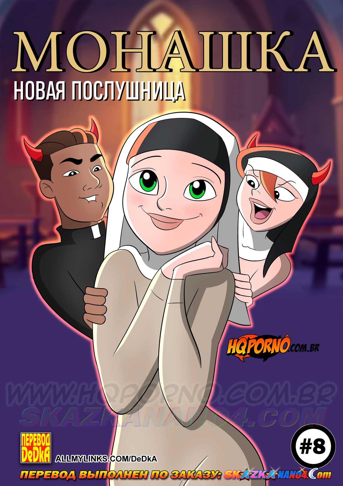 Читать далее 10 Июл 2025 6380 0Порно комикс «Монашка. Часть 8. Новая послушница.»